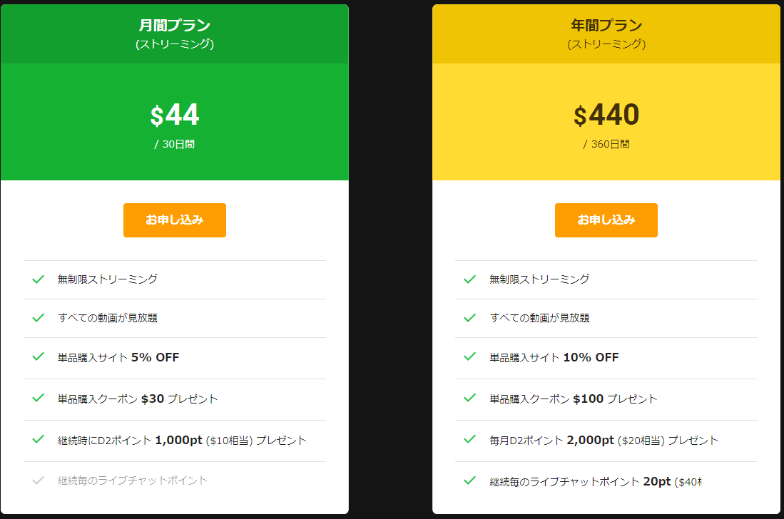 分かりやすく月間プランか年間プランのどちらかのプランからの選択になります。