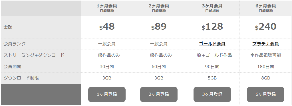 最初から90日会員や180日会員になるとVIP作品や超VIP作品が視聴可能です。