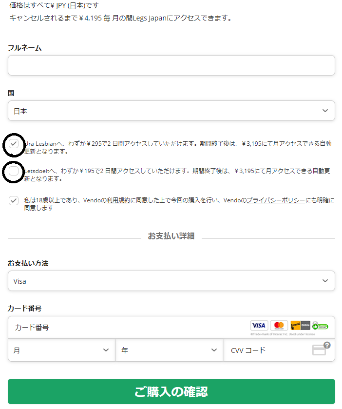 | 支払い方法 | クレジットカード(VISA、JCB、Master Card) |